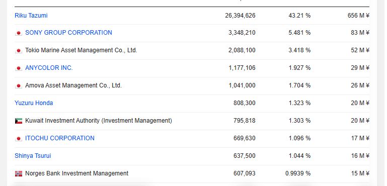 >>110152424Riku, the cfo and the angel investor who have been with them since the start own the majority of the shares