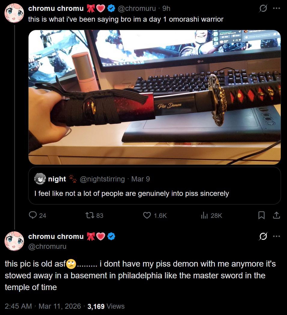 chromu seems like the kind of girl that would ask me to pee in her butt and vagina