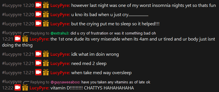 Lucy drink a ton of that gamersupps trash, so of course her sleep is fucked