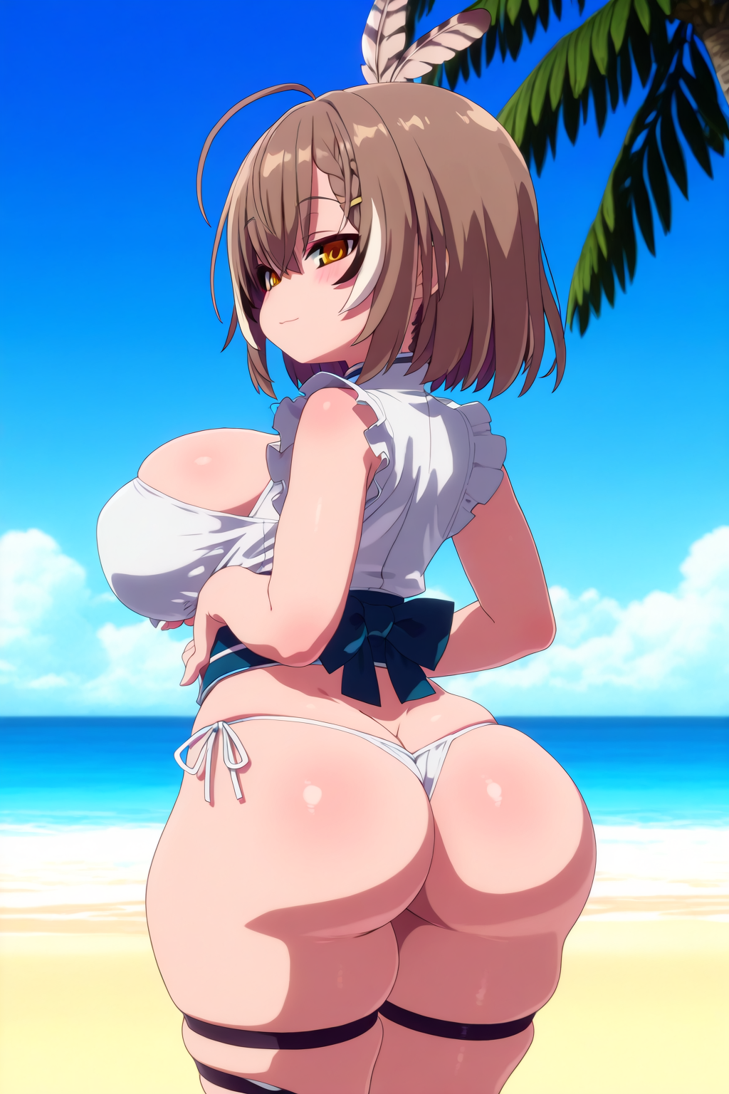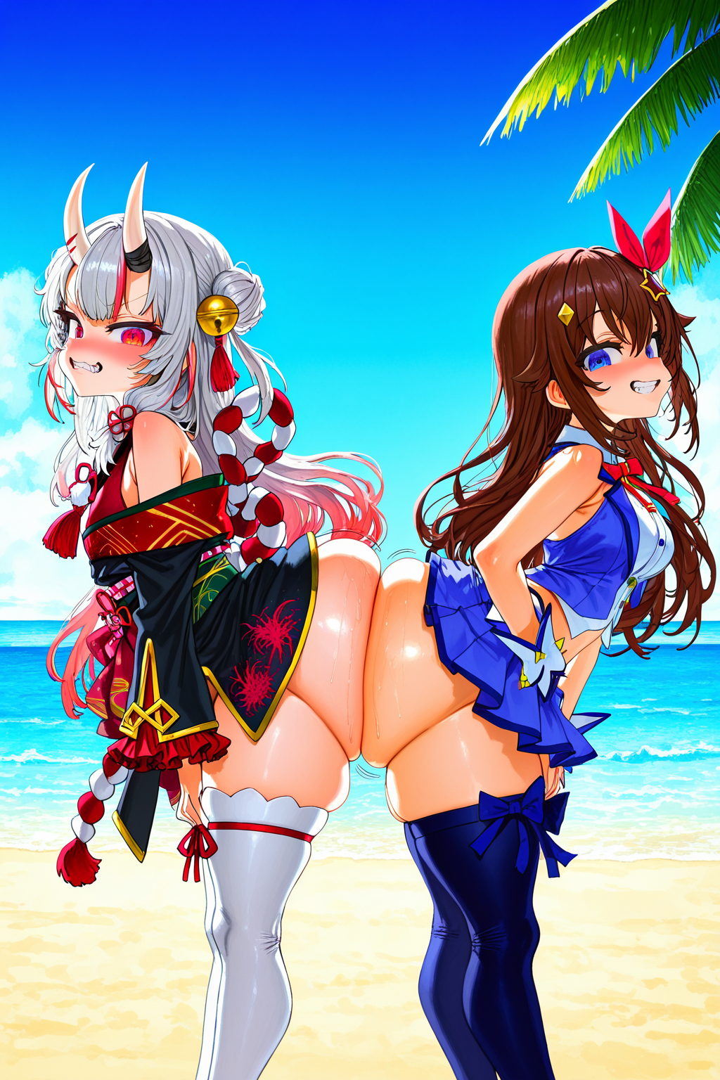 Chuubas wearing extremely thin slingshot bikinis at a beach.