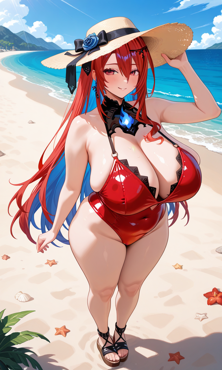 Posted this in the previous thread right before it sent down: Kobo post-sex laying on a bed nude on her back, cum leaking from her pussy looking completely exhausted. Bonus points if you can add signs of recent use like a red, sore skin around the pussy, inner thighs and ass cheeks + grip marks around her throat and arms