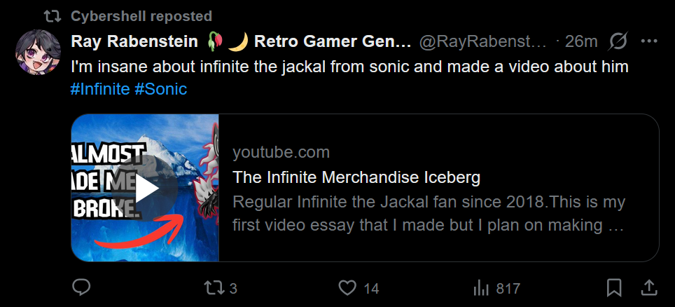 >Ray showing his 33min long Sonic merch video essay