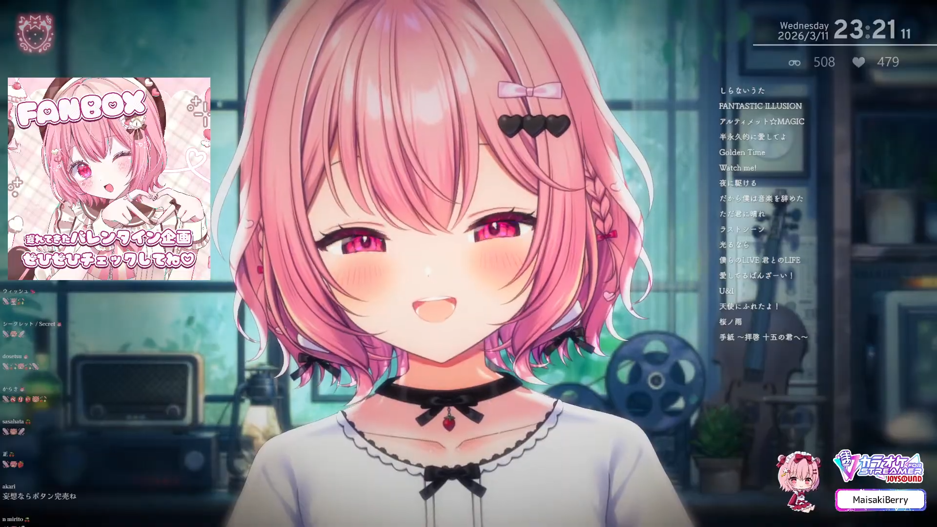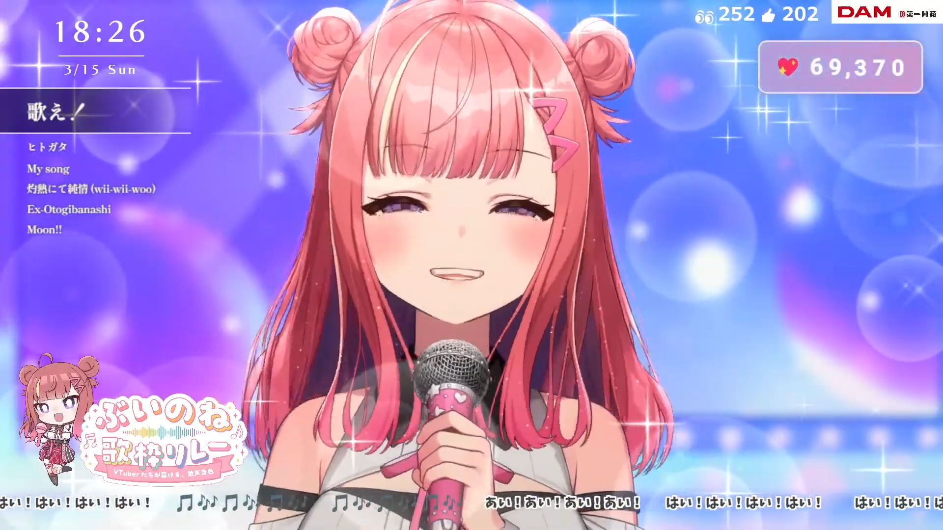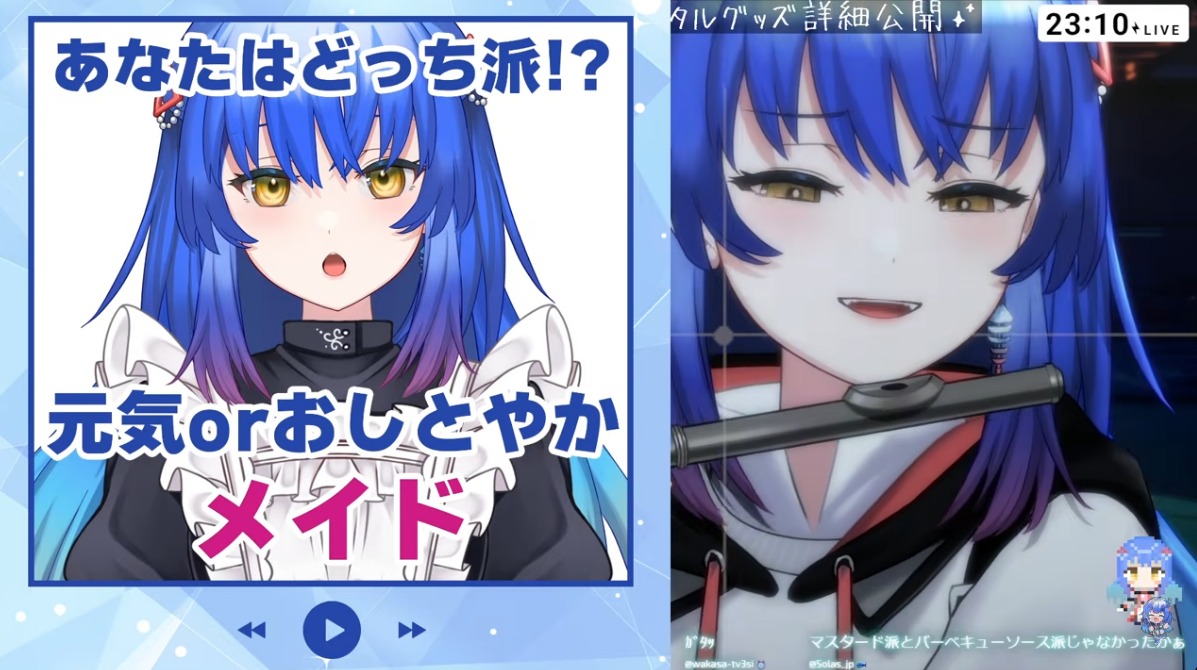 Song Frames and Special EventsOtodama Hibiku Acoustic Guitar shortshttps://www.youtube.com/watch?v=J-otSxNuyggMaisaki Berry 3D Karaoke livehttps://www.youtube.com/watch?v=6jYcqXjpMecHazuki Hina Flute w. Announcementhttps://www.youtube.com/watch?v=5uJBO_Z423ISamayoi Suzu shortshttps://www.youtube.com/watch?v=yLHWKh_3LMM