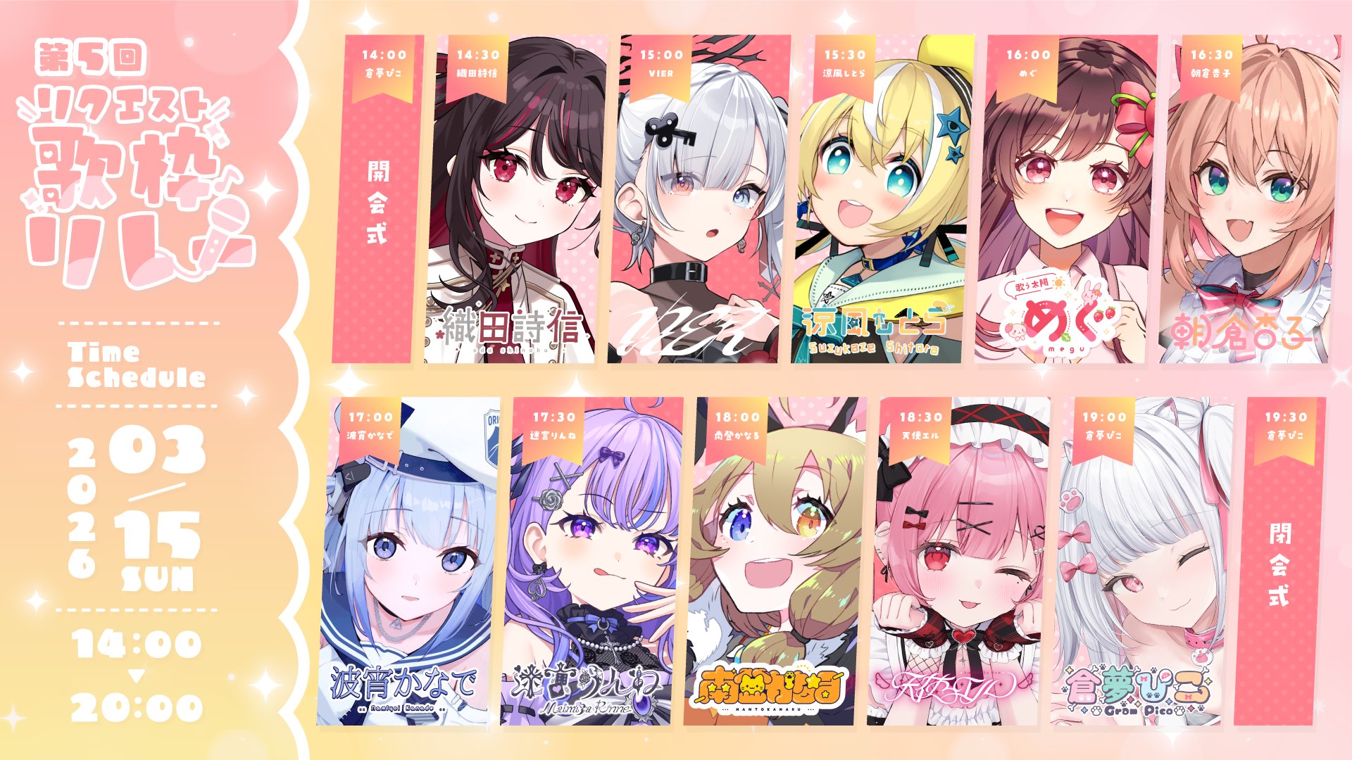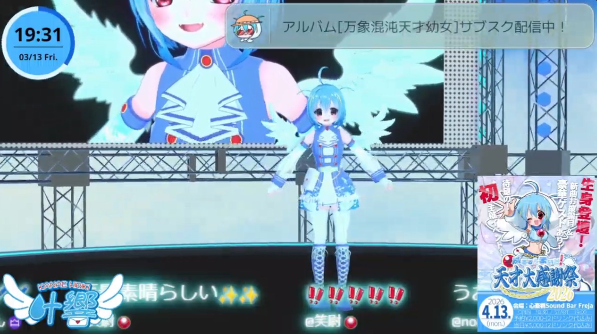 Thread to discuss the VSingers; the virtual singers of this industry. Originals, covers, utawakus, lives, etc., post them all here.Previous >>110024356Quick Vsinger primer: https://docs.google.com/document/d/e/2PACX-1vTBi4uaMG51lP8VQRTWpV1FE2itlmFAziaaeVOt1e5O-g7OksrVCgCEJ5FL5FUf40LpzJoZ1KUPdv3Q/pubUpcoming Lives:3/14: Leaf willow Live vol.6 (Yuzuha, Lucia, Dango, Chigusa) https://youtu.be/W6198xxp1SU3/15: CONNECT V Fes 2026 1st Act (Lucia, Nemo, Nanoha。, Tear) https://tacitly.zaiko.io/e/connectfest263/15: CONNECT V Fes 2026 2nd Act (lilia, Shirase, Momo, Ruri) https://tacitly.zaiko.io/e/connectfest263/20-22: Life Like a Live!11 ~Cross Adventure~ https://www.zan-live.com/en/live/detail/107483/21: Etoile 1st LIVE「MOMENTUM」https://react-event.zaiko.io/e/reactbeatmeet3/21: NÄO 1st Real One man LIVE「原点改軌」 https://highwaystar-inc.zaiko.io/e/nao1streal3/22: NEPHLA 4th Anniversary Acoustic Live 「real me?」 https://nephlaproject.zaiko.io/e/nephla4thlive3/22: Hao 1st ONE-MAN LIVE 「葬華夜譚」 https://www.zan-live.com/en/live/detail/107543/22: MIKAGE ONE-MAN LIVE 2026 「春、月白揺蕩う水縹」 https://www.zan-live.com/en/live/detail/107533/27-28: Takanashi Kiara / Ninomae Ina’nis 1st Concert "Drawn to Dawn" https://spwn.jp/events/evt_26032801-jpkiarainanis1st3/28: YONO Acoustic Live - BIRTH OF COLOR - https://www.zan-live.com/en/live/detail/107554/11: MeridiaNight: Tesseract Symphony https://meridianproject.kktix.cc/events/1eeaae7e4/11: Kannagi Tenri 2nd one man live "Reveal" https://eplus.tickets/kannagitenri/4/18: XIDEN BIRTHDAY LIVE 2026 "BORN FROM aXIs" (Link TBA)4/25-26: LIVE UNION 2nd LIVE "The Awakening" @Legacy Taipei https://emergelivehouse2.kktix.cc/events/c72516a34/26: LiLYPSE 2nd SEASON 少女歌葬ユーフォリリィ 第零楽章「不歌神力INITIUM」 https://www.zan-live.com/en/live/detail/107454/26: Rock on V SuperLive https://www.zan-live.com/en/live/detail/107515/1: ヰ世界情緒 2 DAYS LIVE - Day 1「Flower Closet」at Zepp Haneda (TOKYO) https://www.zan-live.com/en/live/detail/107015/2: ヰ世界情緒 2 DAYS LIVE - Day 2「Anima Re:birth」at Zepp Haneda (TOKYO) https://www.zan-live.com/en/live/detail/107015/7: LIVE UNION 2nd LIVE "The Awakening" @Spotify O-EAST (Link TBA)5/11: Vack-ON!! vol.10 -Flower of Luminous- https://eventa.zaiko.io/e/vackon-lumens