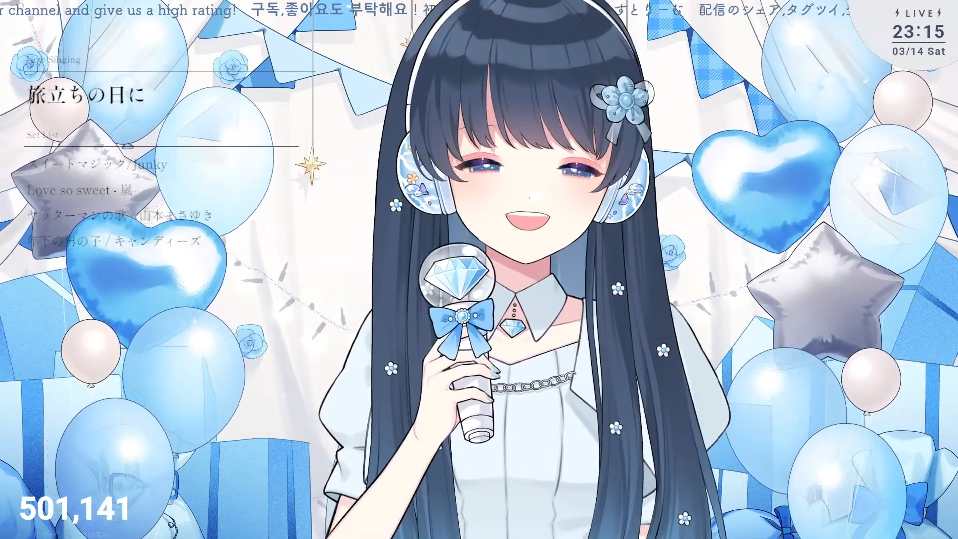 Song Frames and Special EventsNaraetanhttps://www.youtube.com/watch?v=FzYxPxfnn1YFuuma Koyoihttps://www.youtube.com/watch?v=ZH0zeC3D90UZettai Tenshi Kurumihttps://www.youtube.com/watch?v=w7G86dNjW3QMokan 222 ccv 300 likes endurancehttps://www.youtube.com/watch?v=5QZhF-TB9WAItsuki Chise an hour and a half song framehttps://www.youtube.com/watch?v=GduNPvF8SUw