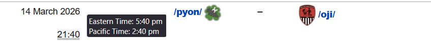 If anyone wants to make a hype video for our first match against /oji/ let me know, this is the match time in burger time so it would have to be done some time before that (ideally not right at that moment since we have to get it over to the guy streaming it)