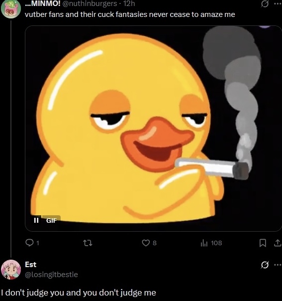 >>110178422well that's because most vtubers are evil women and have the same contempt for their audience>>110178428honestly the lowest this thread has ever been, pathetic