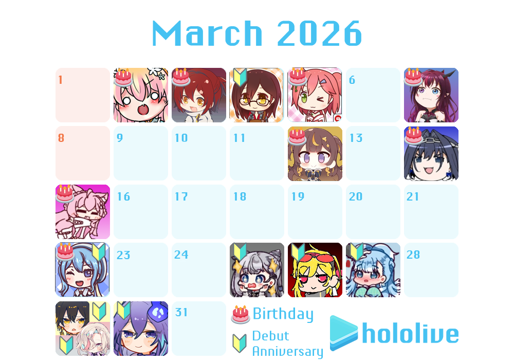 https://www.youtube.com/watch?v=RS0qhTuerlY Su Umamusume(+0:30) https://www.youtube.com/watch?v=0EONIWgeqoI Koyori birthday countdown(+0:45) https://www.youtube.com/watch?v=wP9w-hWScFE Miko Pokemon Pokopia