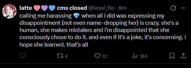 >>110188924>she has said before that twitterfags, clipfags, and shipfags are fans and that no one can dictate what a true fan is. she threw a net too wide and now there’s few hardcore fans that just love Rissa for Rissa and not the shipping antics or twitterI get that, i truely do. But for me i just struggle with finding who's real and who isn't and is just grifting and attention whoring.