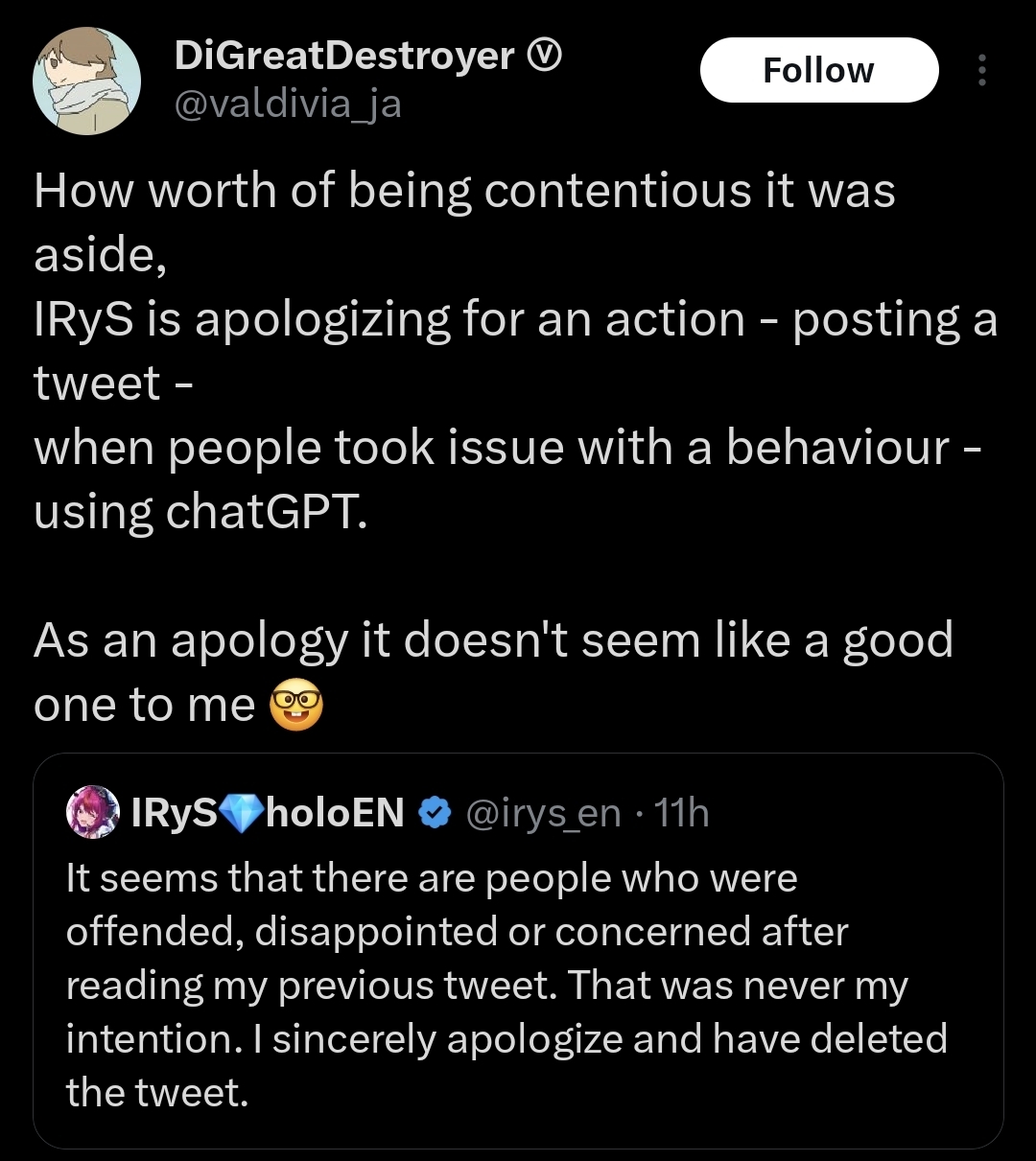 Yall realize that in protecting irys for reasonable criticism, yall are siding with Ernoul right? Really hitting rock bottom here.