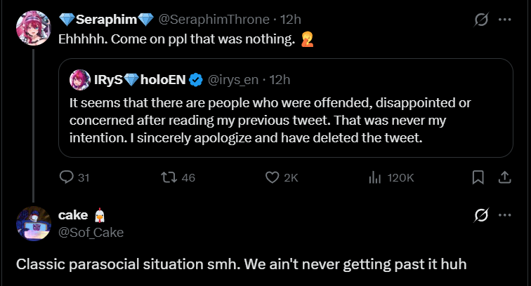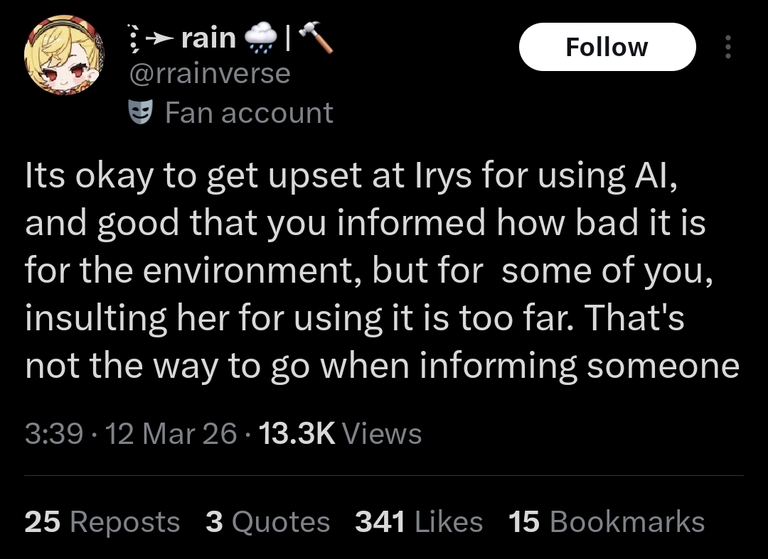 Yep, I called this before. This is why people like ERB and CC are an issue. They festered fanbases that attack fucking IRyS of all people.