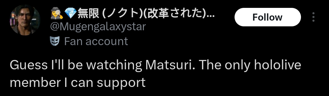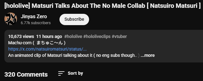 >Even Matsuri says no to male collabs the year 2026 of our Lord