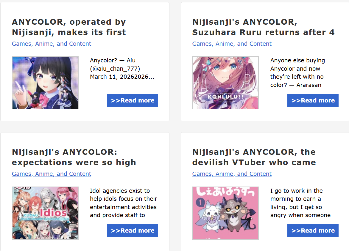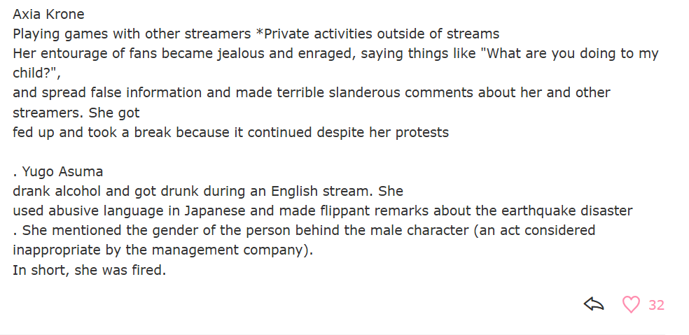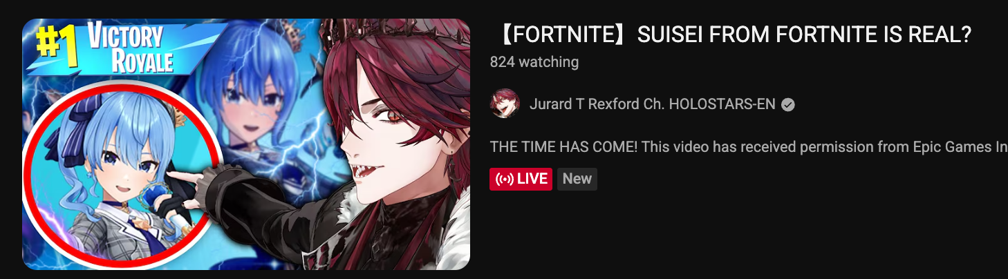 >>110201714>>110201726He doing niji and cover monthly review of the companies and at one point he cried because hololive modal keep on winning, i think it was after selen shocked, it got posted here frequently. I think he's also suicidal iirc.