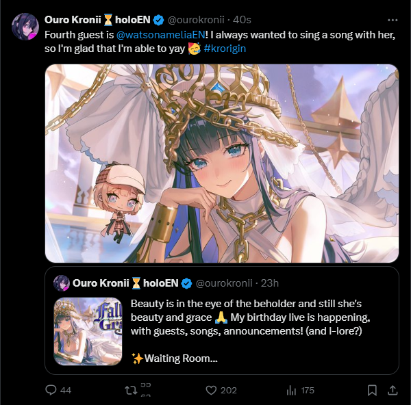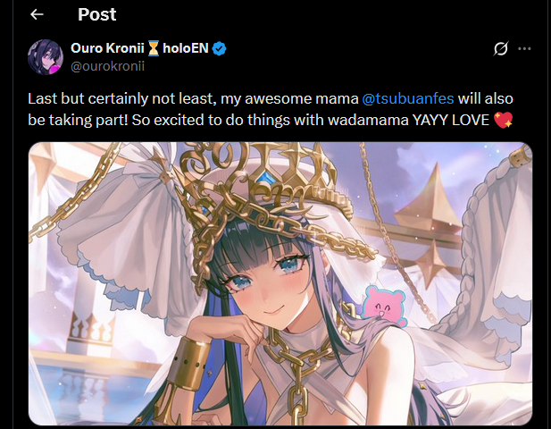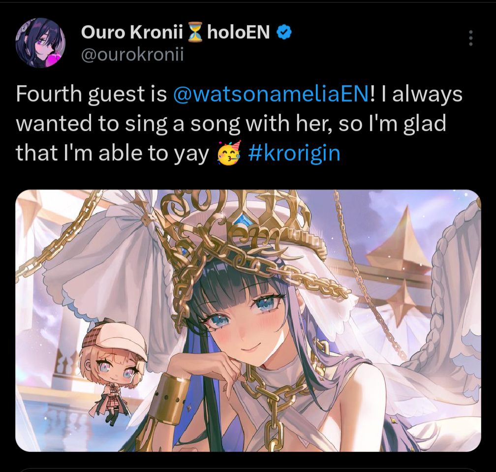 >Wada is on Kronii birthday 3dHoly fucking shitThis might unironically end up the biggest stream EN has ever done for numbersWada is a fucking legend in how nobody knows anything about her except that she is a girl and massive gooner