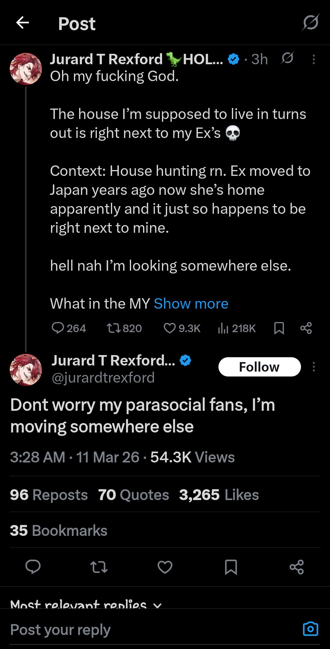>>110205445>Moving next to Bae>Lying that he moved elsewherekek
