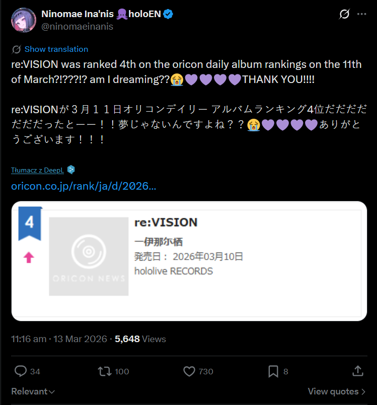 >>110205964Kiara's album got onto oricon too anon