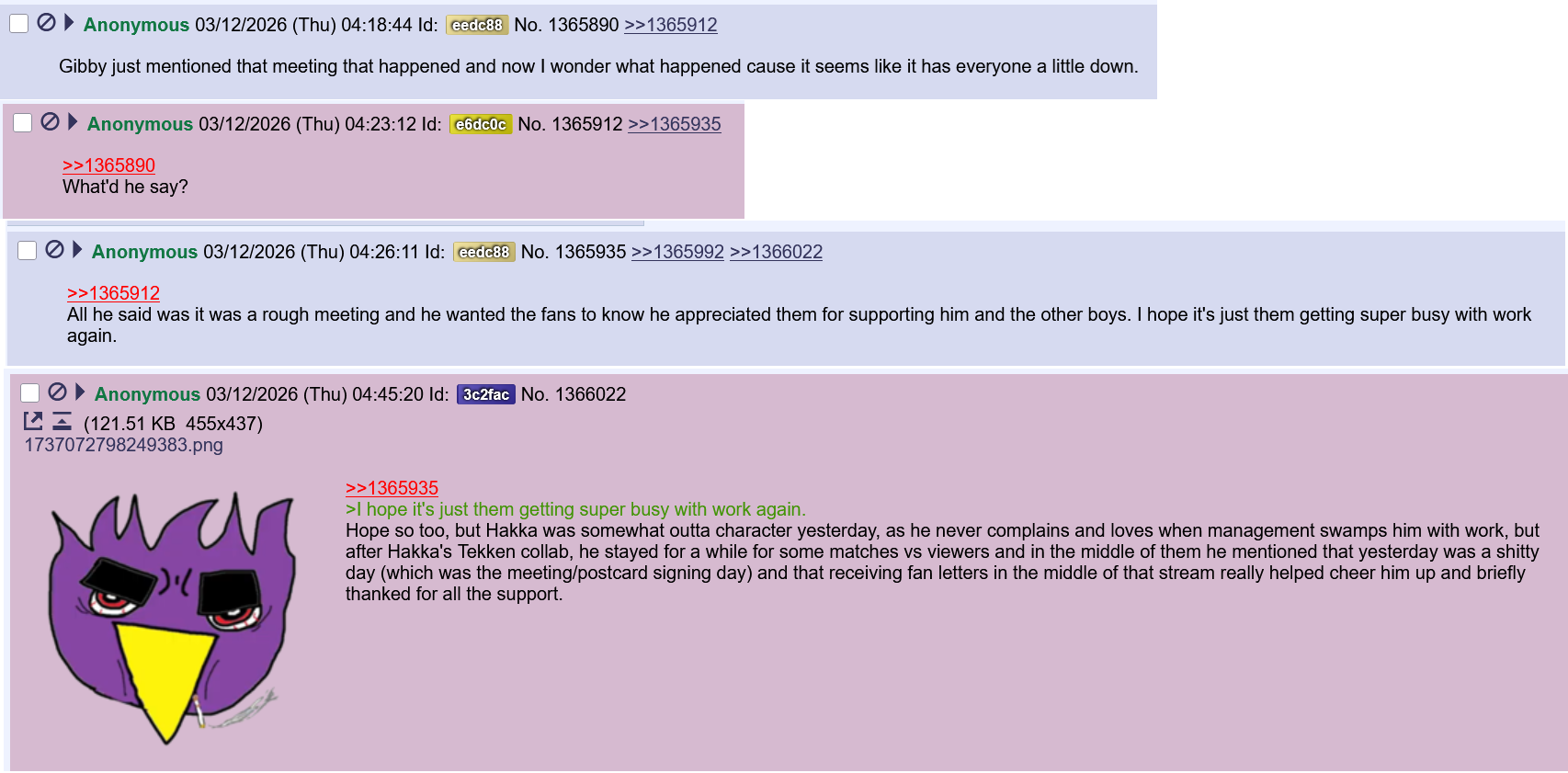 >>110209042>>110209085Even I got pissed off and was close to throwing a melty but towa anons calmed me down yesterday.