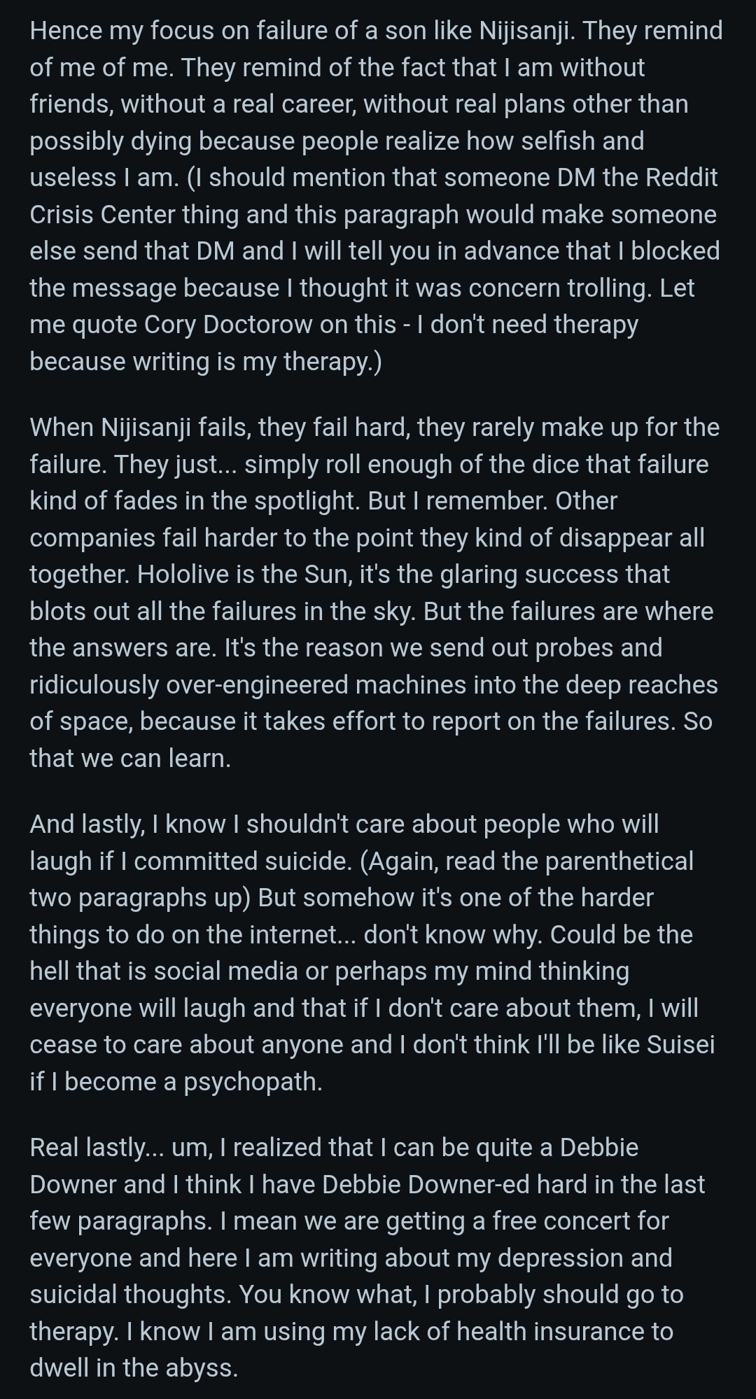 >>110206378True, I tried to at least give some levity at the end, person sounds like they could use it.