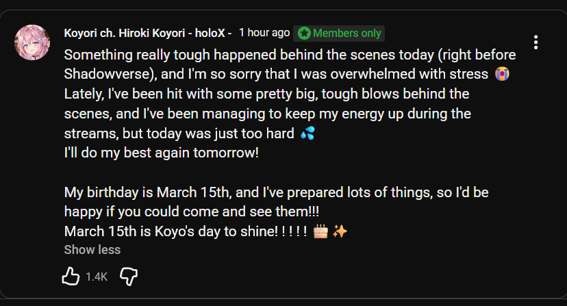 Wow even the HoloJP numbers are grim todayWithout the bots I don’t think Kronii’s birthday live gets over 20k