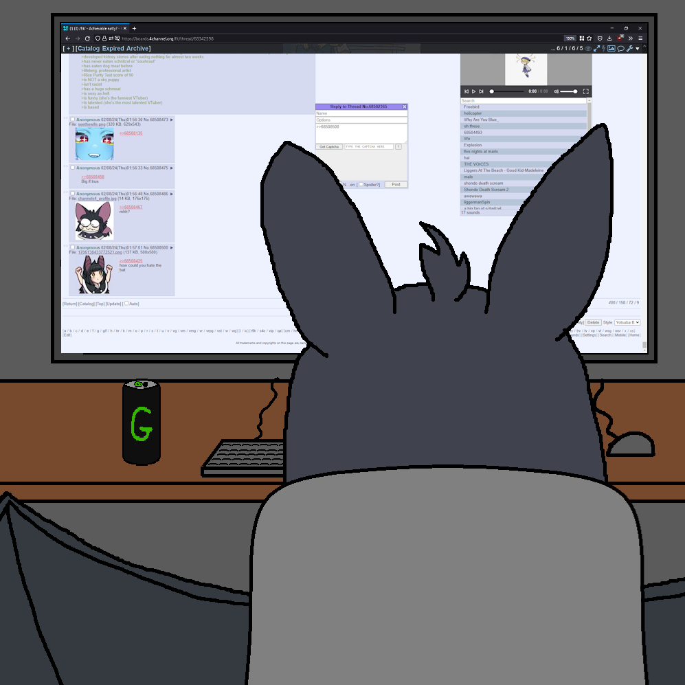 >click on Kana stream>playing 2000s emo rock while playing fortnite or somethingKiba acts like this too. Is this an archetype? Furry chick who likes emo rock and the same boomer game?