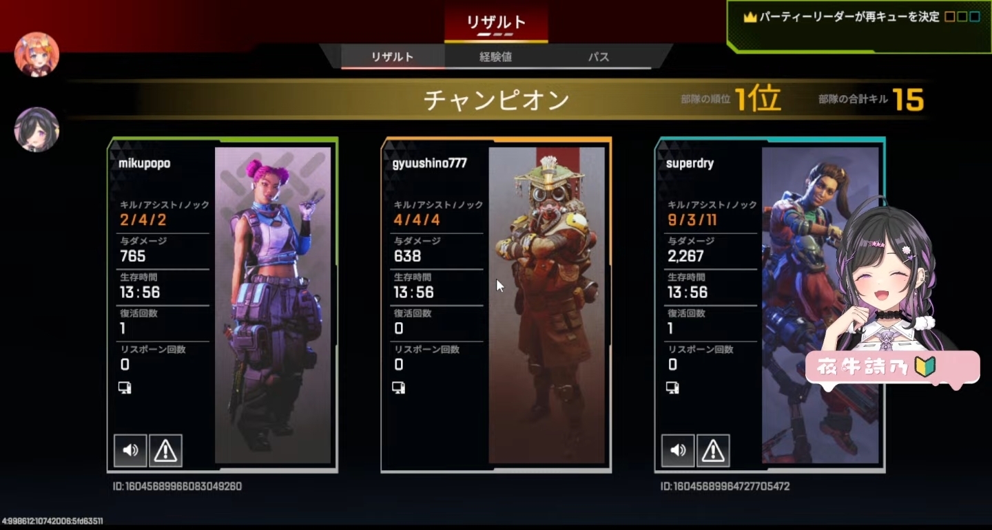today there is apex im going for ebio teamthere is also collab with karubi-chan after that...