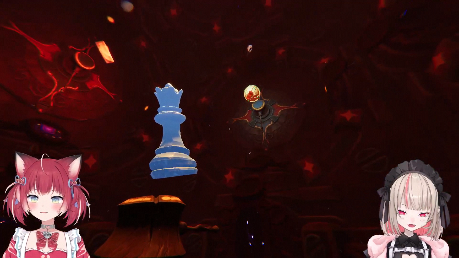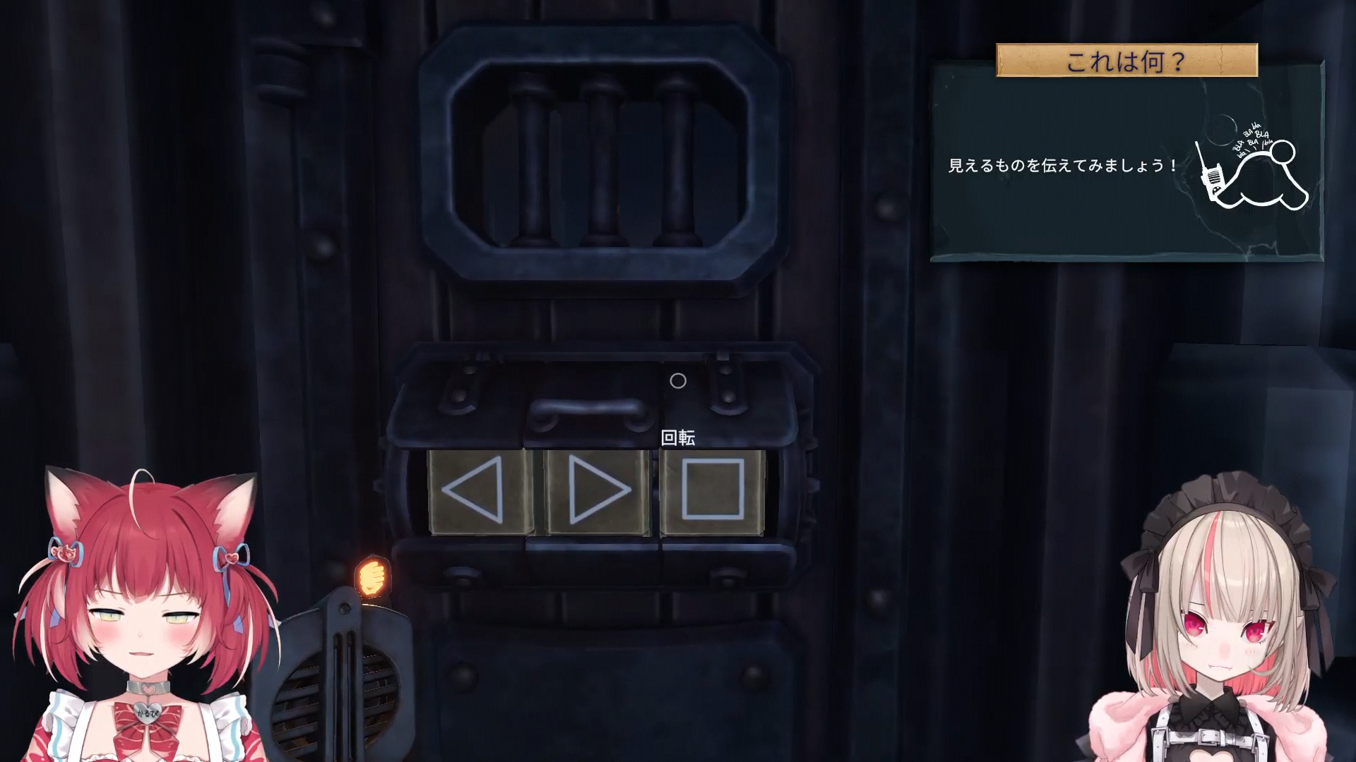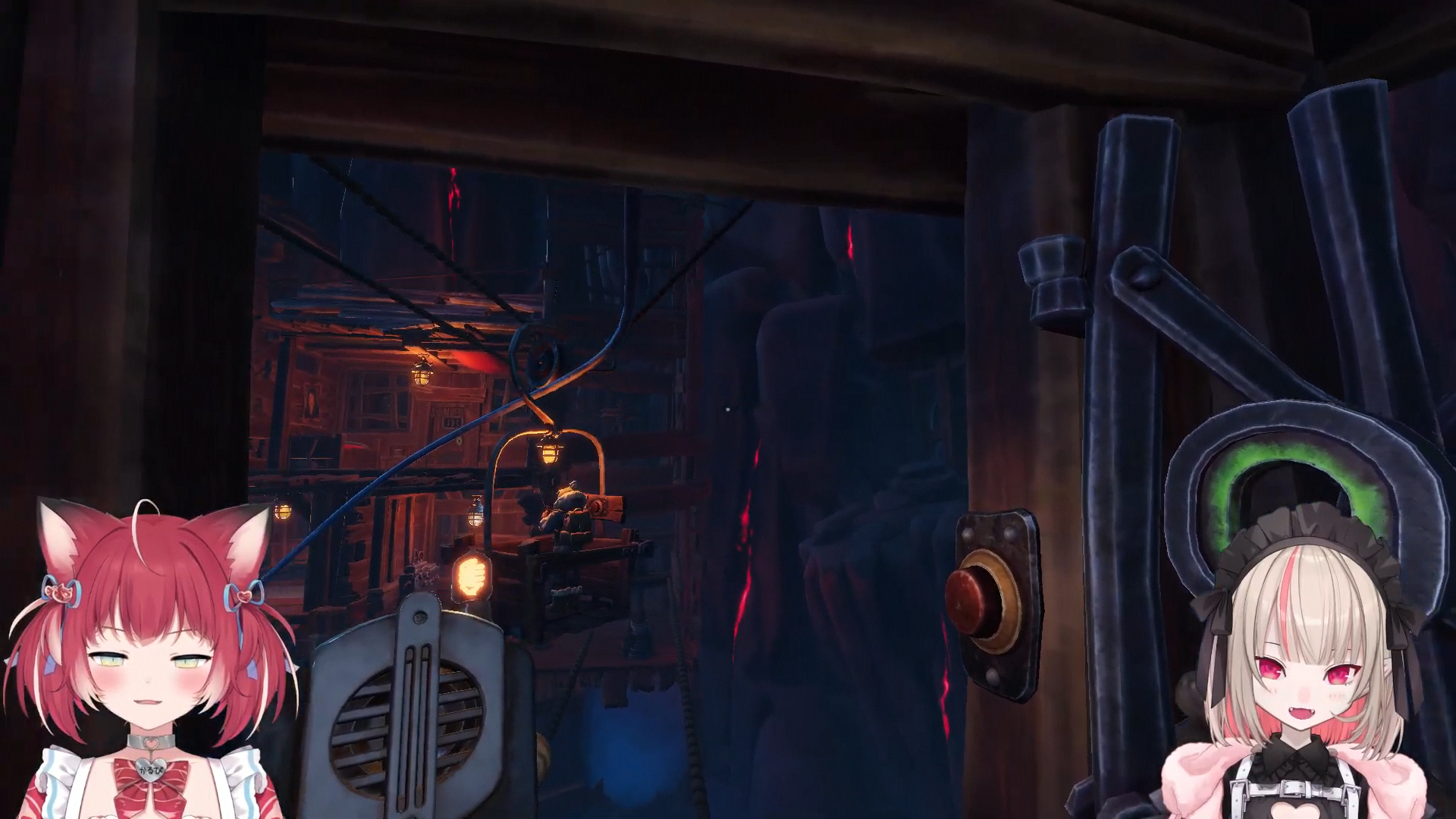 they had to adjust settings because one game was in english and the other in japanese yea karubi was in english and ririmu in japanese (ririmu is japanese) they did some sound test too ririmu said they try to get along and not fight she read the review and there people that got angry at each other when they played it like it takes two the split screen one they in separate areas we solve puzzle too