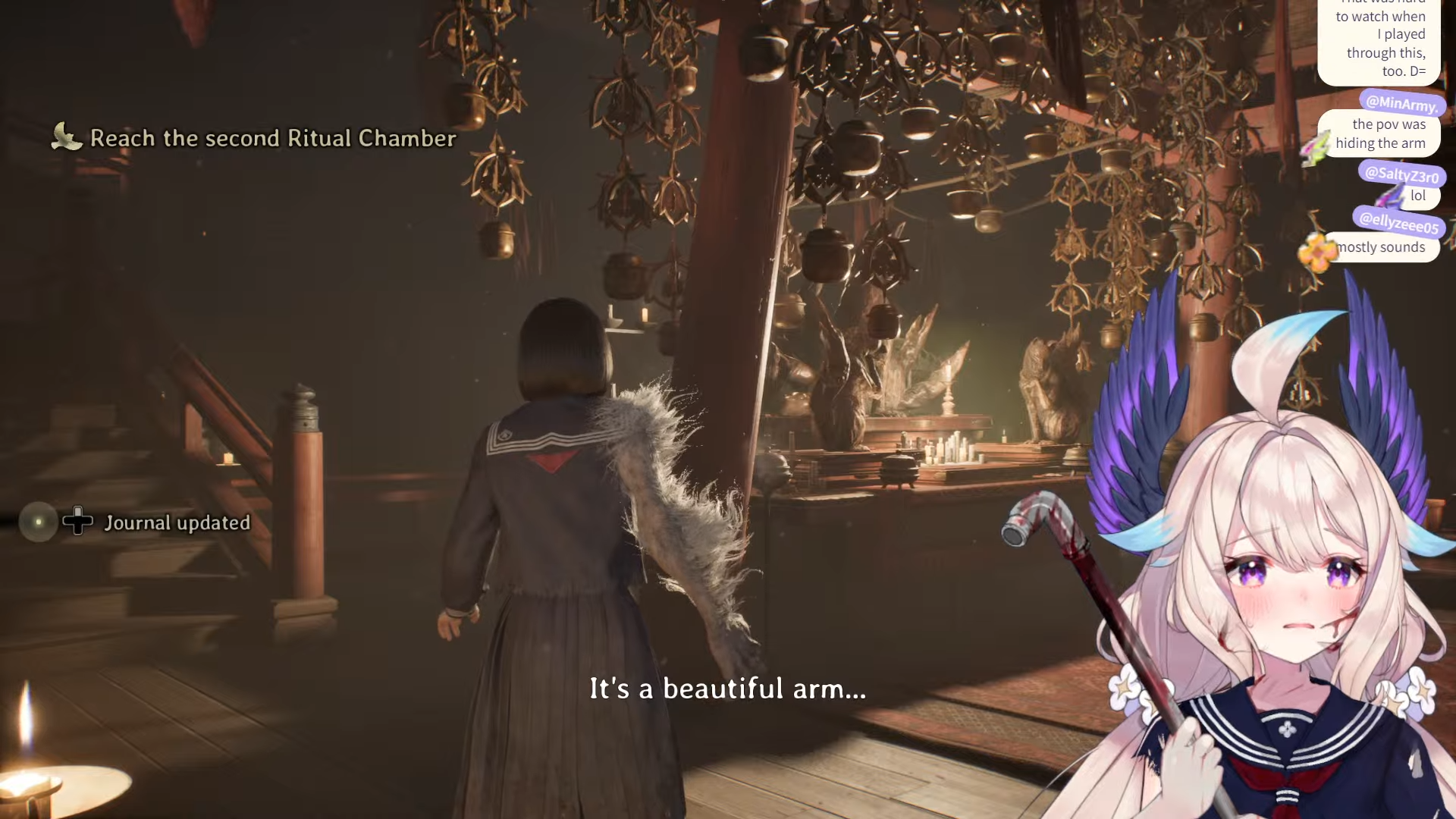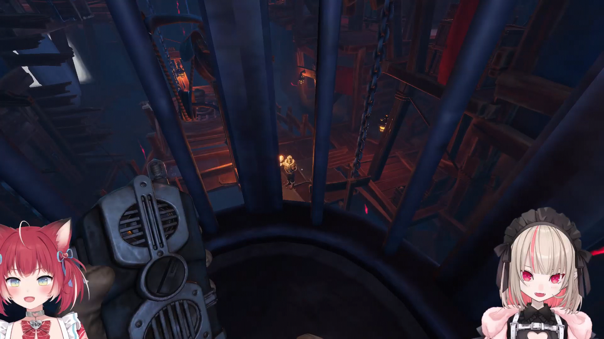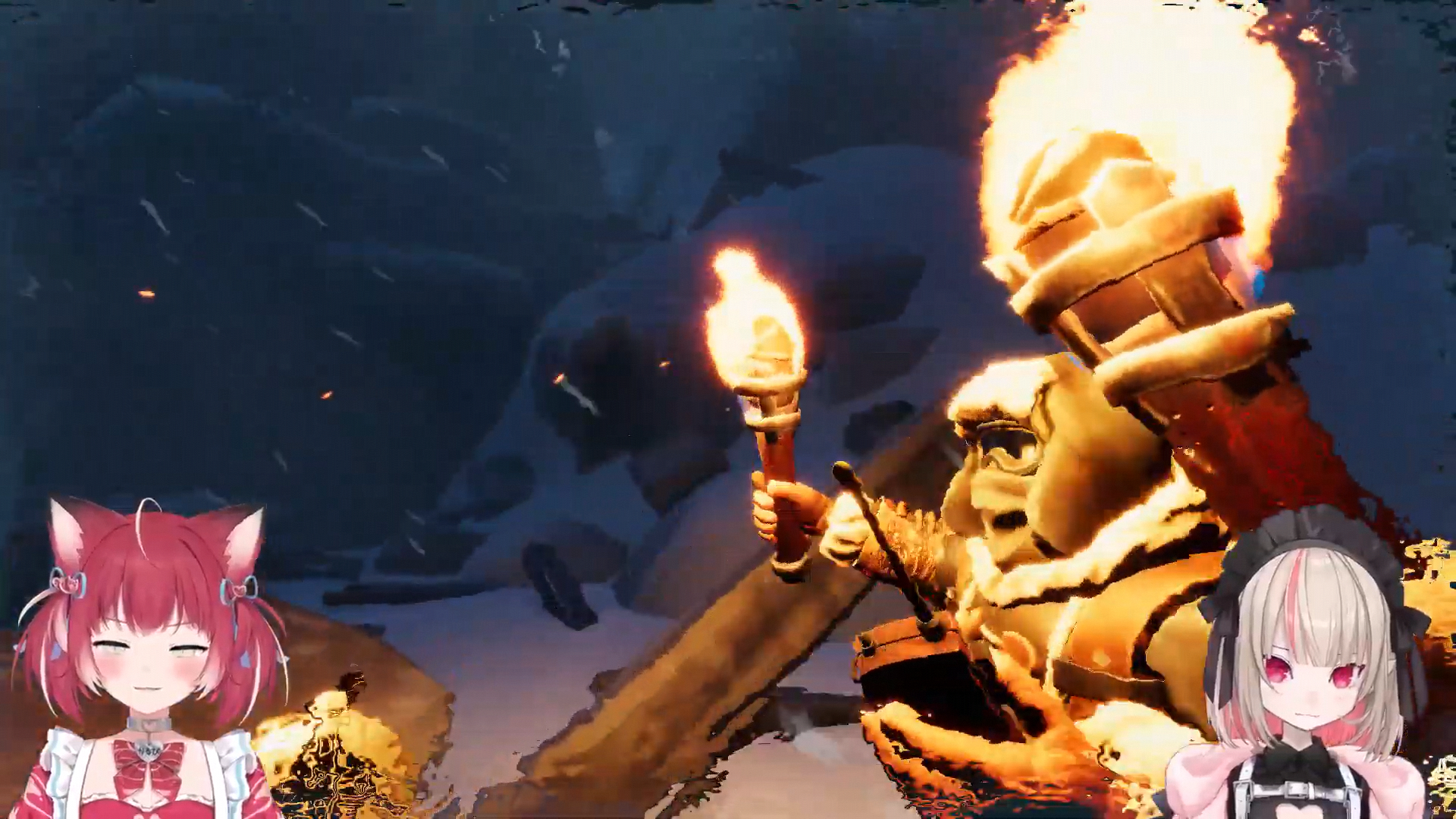 they had to adjust settings because one game was in english and the other in japanese yea karubi was in english and ririmu in japanese (ririmu is japanese) they did some sound test too ririmu said they try to get along and not fight she read the review and there people that got angry at each other when they played it like it takes two the split screen one they in separate areas we solve puzzle too