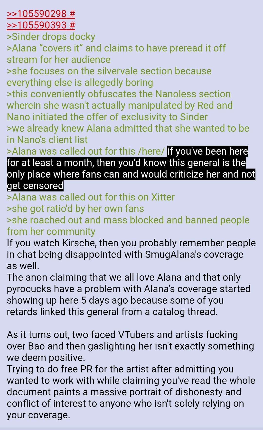 >>110233705I think it's time we talked about this.A long time ago I told you it was fine to post this list as long as people genuinely talked about the chuubas listed.But I don't think I have seen people really talk about these chuubas. You might want to take out the few that haven't been mentioned even once in the past 3 months.