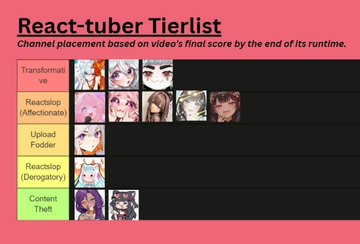 So some autistic nerd did an autistic thing and Alana got top score for transformative-ness in her react content.Graded on a certain criteria - plus points for making related points in their own words, analysing/critiquing the video, personal anecdotes, etc. Minus points for stuff like 'thats crazy' / 'chat is this real', dead air for extended periods, etc.