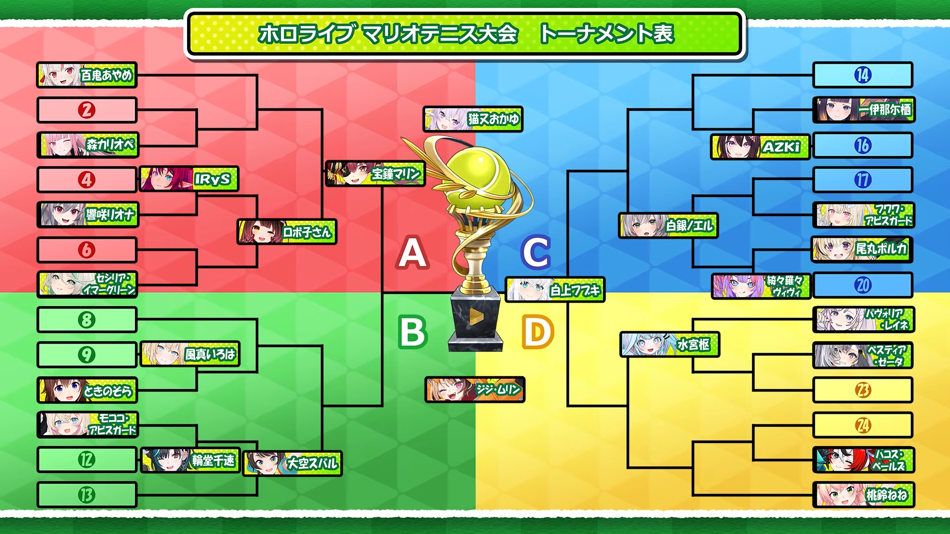 >>110235454Also upcoming is Peko's Hololive Mario Tennis Tournamenthttps://www.youtube.com/watch?v=GEBtogETOTsI don't know the formatting if they're all just going to call in to Peko's channel or if there will be individual povs.