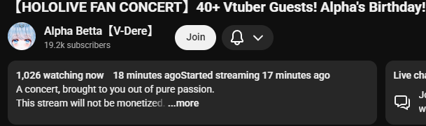 Alpha's holofan concert featuring friends and big holo fan Ollie, in 27 minutes