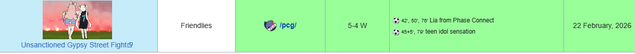 >>110266108i'm still around im the usual wiki autist besides youi don't usually do writeups, but i did update all the stats+info box in january. try to help update the match history if it is outdated but it is always up to date