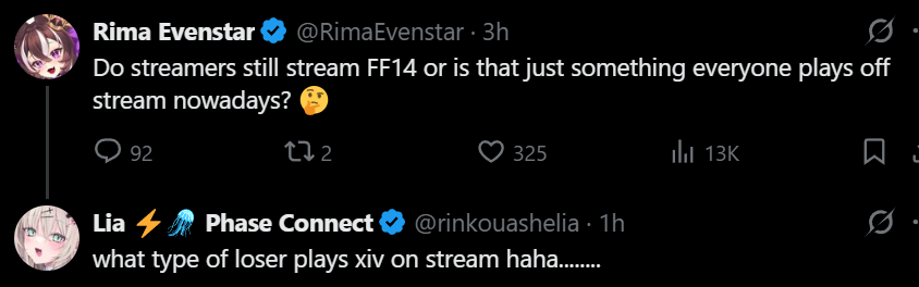 today i woke up thinking about how lia got all sweaty after that workout and then proceeded to end stream and play ff14 for hours until she took a shower right before the next stream. imagine the smell