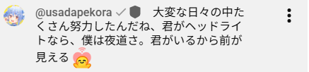 >>110259862>You've worked so hard through those tough days. If you're the headlight, I'm the road at night. I can see ahead because you're there.??? Where did she say this?
