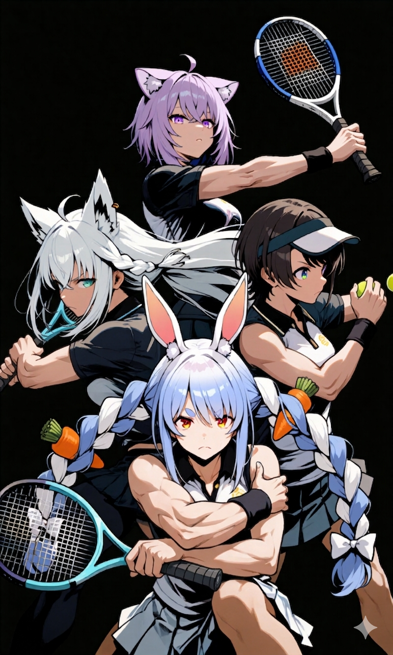 >>110261220okayu, subaru, foob and peco in tennis uniform as bohemian rhapsody album cover