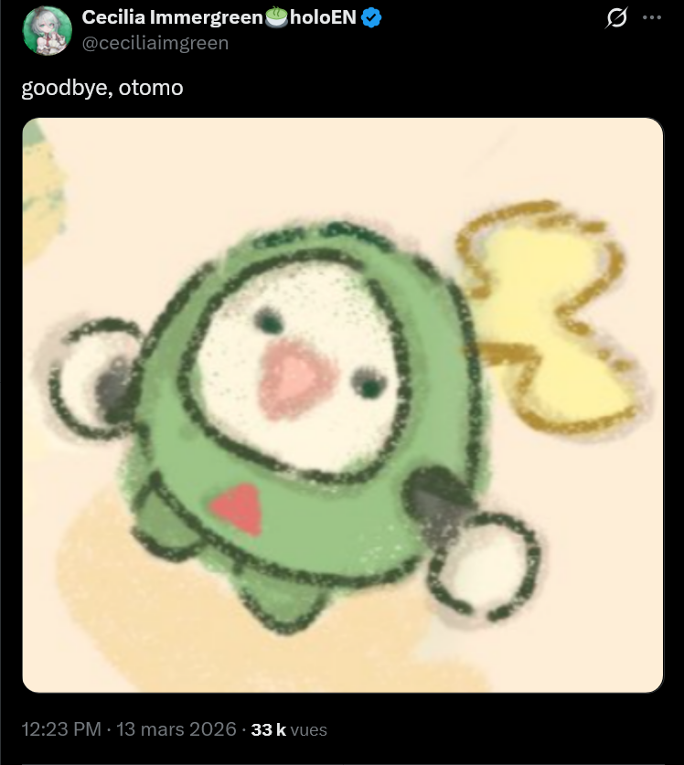 Hello fellow cucktomos! How is our favourite runt doing? Still spamming collabs or she stopped streaming at all without any updates?It is true wonder why she has the least subs in EN when she spams collabs and gets carried by Gigi in this troon’s favourite pairing. It seems that being boring in solo streams far overweighs collab spam.Not that she gives a shit. She no longer wants to stream and only wants to party with her friends.Green holos are always the curse.