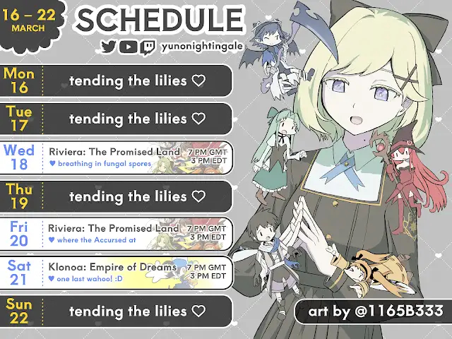>>110289571Level 18 now>>110289577Incredibly cute riviera art of yunoI do love that she is getting these schedules out earlier in the week too