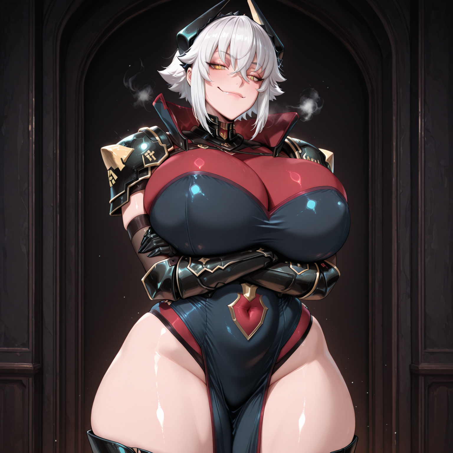 >>110277868Geegs outfit doesn't have exposed breasts. It's piecemeal armor over a sleeveless blue high sideslit dress with a navel cutout over a nylon leotard.