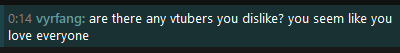 I love Mouse being flirty or things like that with chat but its all just for fun and not anything real.Speaking of, I miss solo vrchat.