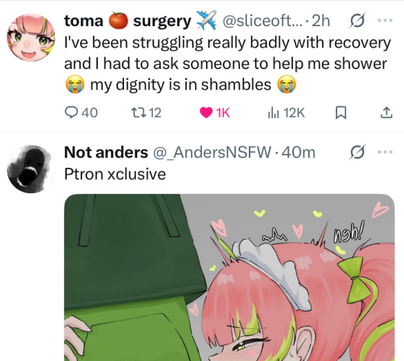>>110286311>May be less prevalent than it once was though.It's notEven the art hasn't really died down, most of the spicy stuff just had to be moved off Twitter, and Vedmila has completely overtaken where Annal once wasThe people complaining were always the people complaining like fucking Soul and Oliwande of all people