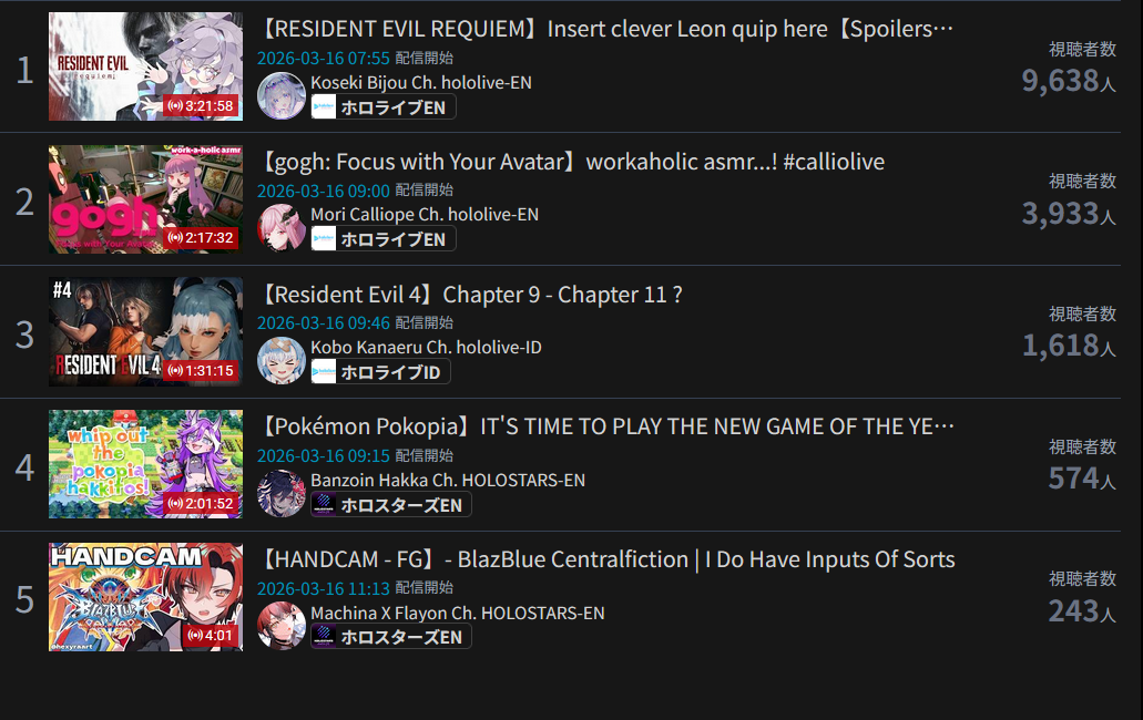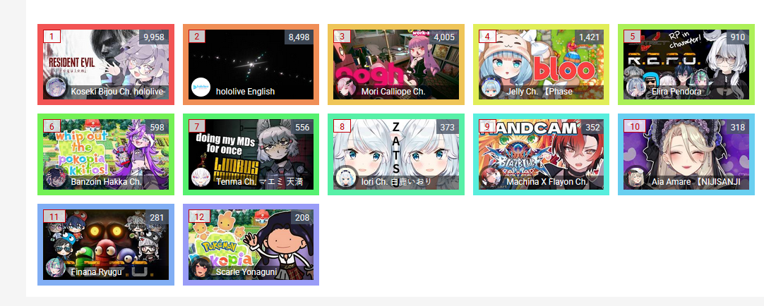 *GENERAL NUMBERFAG SITES*>https://playboard.co/en/>http://ikioi-ranking.com/>https://vrabi.net/>https://www.vstats.jp>https://live-ranking.userlocal.jp/vtuber-ranking>https://vt.poi.cat/Hololive sites>https://www.hololyzer.net/youtube/index.html>https://trackholo.live/en/>https://holo-spotify-stats.jirikunes.eu/Twitch sites>https://sullygnome.com/>https://twitchtracker.com/>https://stats.roki.sh/>https://streamscharts.com/