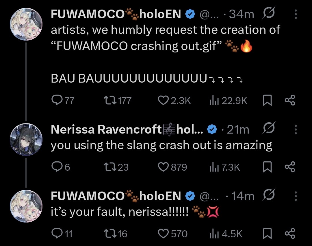 So why the fuck can't Cover just get a 10,000 person venue for ALL of Hololive English? Why is it once again in nearly the exact same capacity as Connect the World? Mori alone sold a concert in the middle of the week at a venue with 2500-3000 people? TakoTori are doing two shows with 4000 people each.