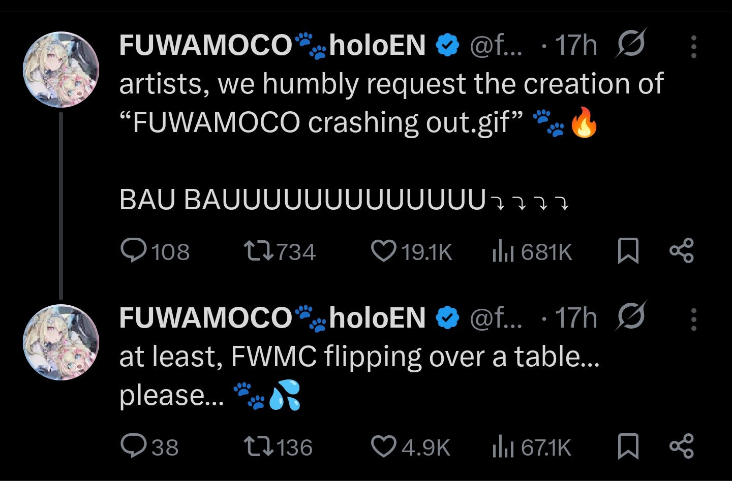 Nerissa please fucking stop self-harming with your onesided ERB obsession that you invented for no fucking reason, and just fuck Fuwawa already...