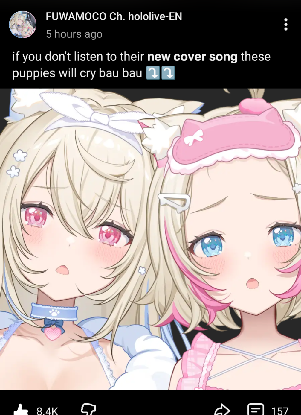 >>110315254Man I hope Miko eventually kills this company. Ungrateful talents and fans who turned their backs on her when it was convenient for them.