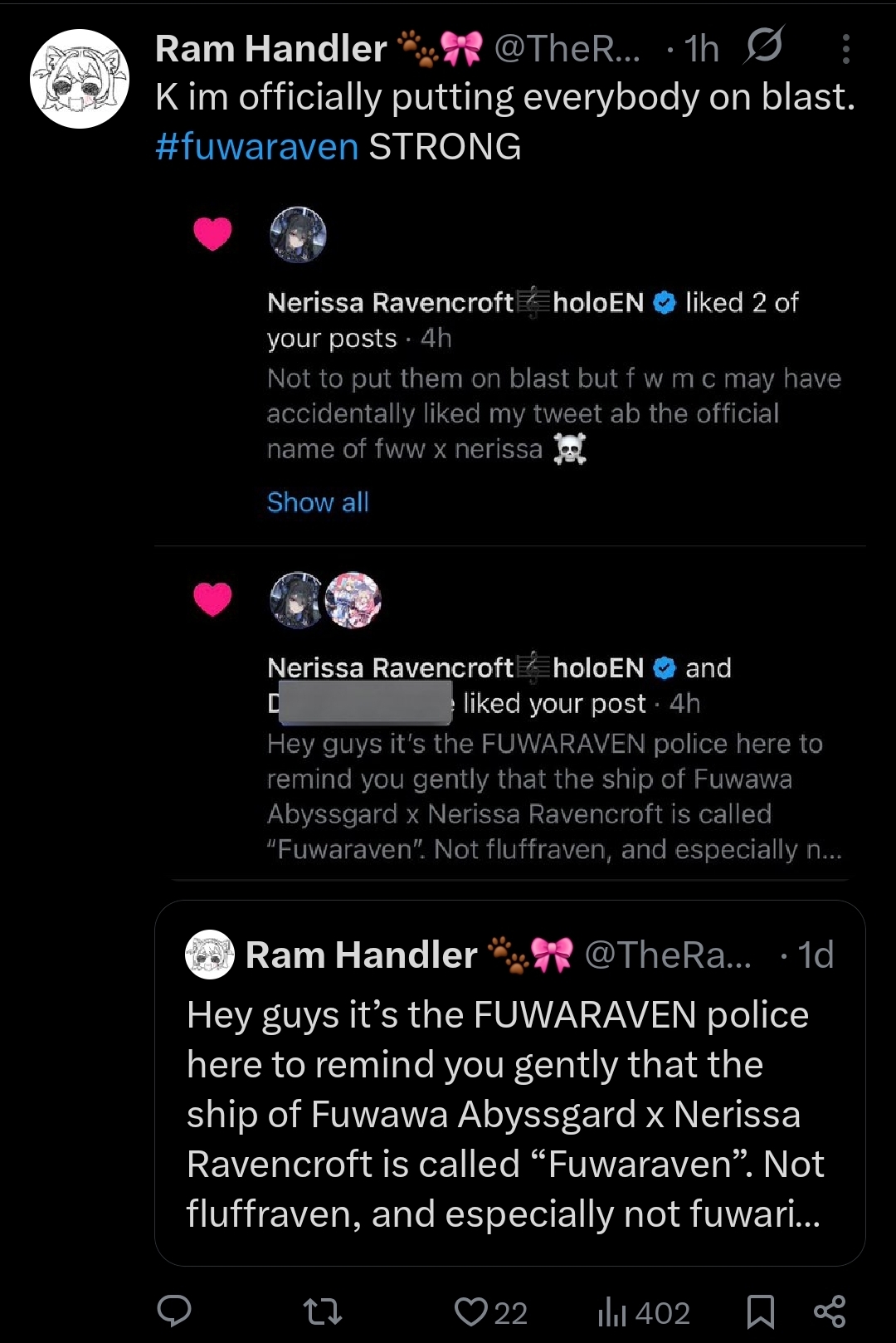 >>110311722>>110311727Both Kronii and IRyS talked about it on stream.
