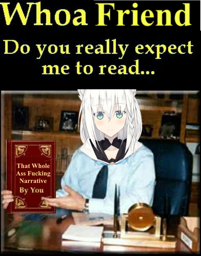 >>110316006Aside from writing a bible, he's correct. Nerissa should've never mentioned any homo