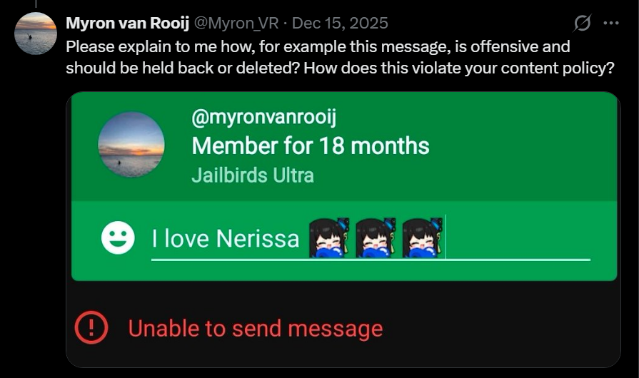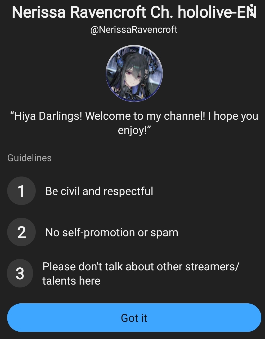 >>110318234It's the>don't talk about other membersRule. Nerissa used to not have it