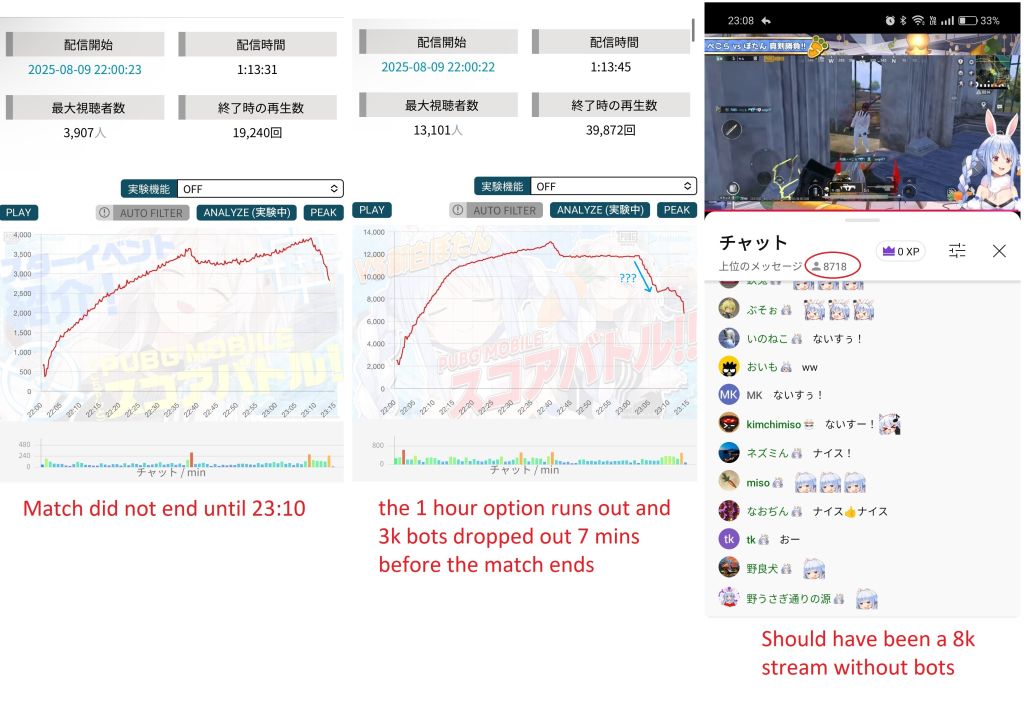NijiEN's girls collab yesterday exposed that they've been using "subtle bots". These bots don't radically change ccv, but increase it by 50% to 100%. They're deliberately trying to fly under the radar of /#/.