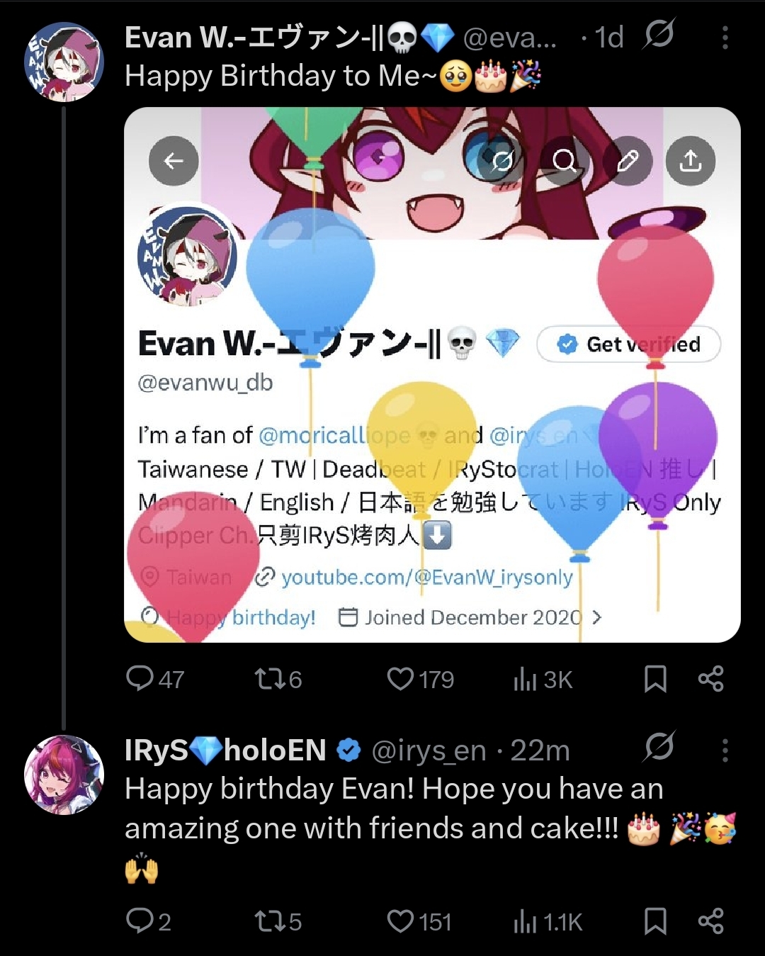 >>110318000Why is it post-worthy if that was just a fan then? Holo tell their fans happy birthday on twitter all the time
