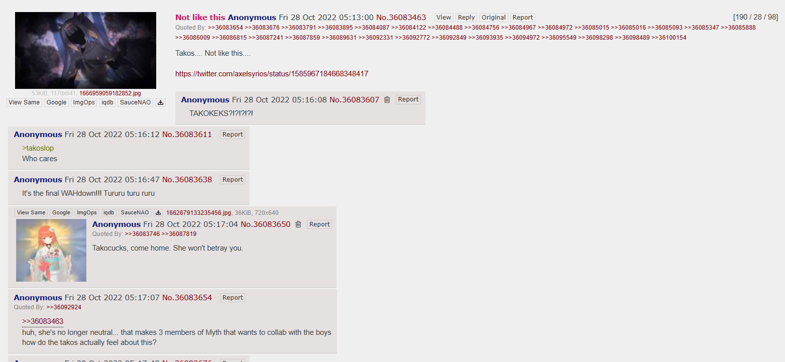 >>110318094I'm not a homofag I'm just explaining what happened/vt/ didn't even care about Ina doing a homocollab btw, her catalog bait thread didn't even reach bump limit because takos are not a unicorn fanbase